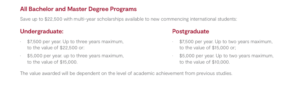 – International Student Merit Stipend- monthly payments of AUD$700.