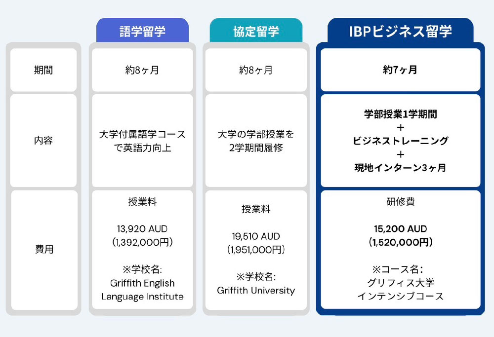 IBP ビジネス留学 グリフィス大学インテンシブコースは、語学習得を超えた留学に挑戦したい方にとって、費用面での課題解決も提案します。