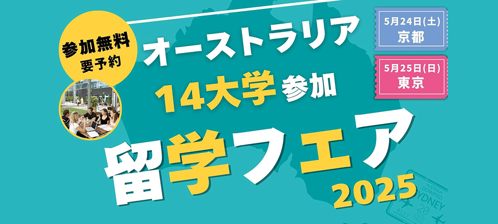 1988年の創業以来、日本人学生の海外挑戦を支援してきたSEKAIA株式会社(本社:東京 都渋谷区、代表取締役:曽根 靖雄、以下、「当社」)は、オーストラリア大使館商務部、ビクトリア州政府、西オーストラリア州政府、クイーンズランド州政府駐日事務所の後援のもと、「オーストラリア留学フェア2025」を開催いたします。本フェアには、オーストラリアを代表する14の名門大学 が参加し、来場者に直接情報提供を行います。