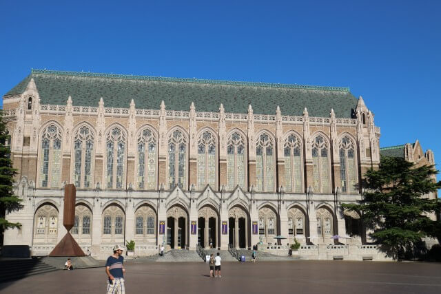 ワシントン大学のメインキャンパスには図書館がいくつもあって雰囲気も良く、勉強する場所としてはとても良いキャンパスでした。日本の大学とは違い、建物に歴史を感じさせる重厚感があって、毎日キャンパスに通うだけでワクワクしました。メインキャンパスで学ぶ期間は3か月しかなかったのですが、期間が終わってからも休みの日などに勉強しに行っていました。カフェテリアスペースも充実していましたし、日本のような生協もありました。