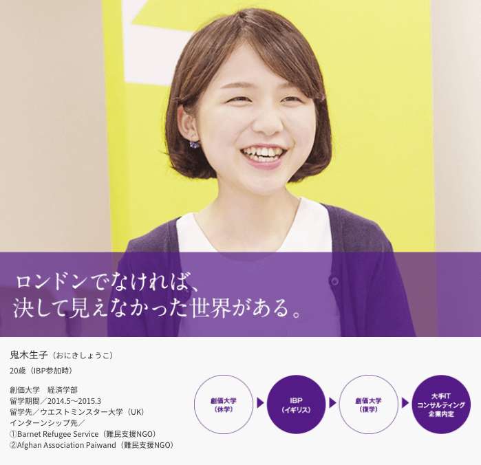 - IBPビジネス留学: ワシントン大学、サンフランシスコ州立大学、グリフィス大学、ウエストミンスター大学などと提携した、1年間のビジネス留学プログラム。