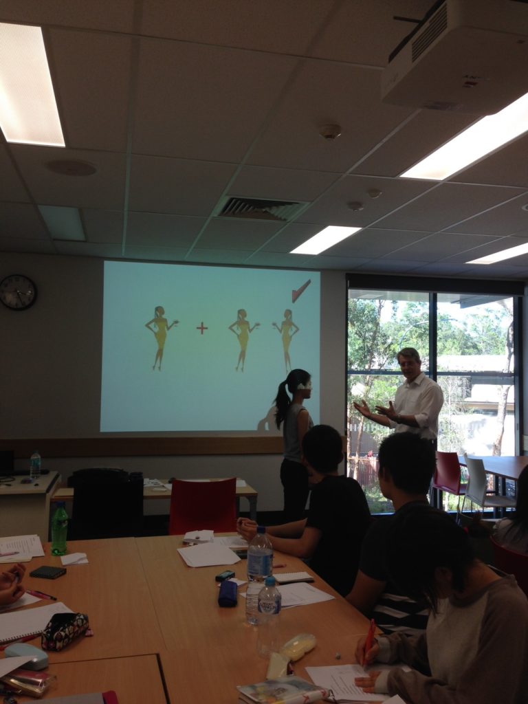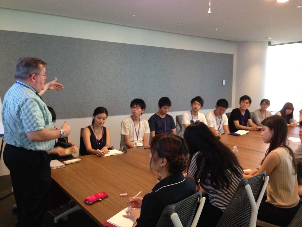 ABS は、ゲストを招いた特別講義も行います。「グローバルビジネス」の実際の現場やリアルな葛藤について実体験を元に解説してくださるのは、オーストラリア最大手の銀行で人事部長を務めた経験のある Chris Whitecross 氏。