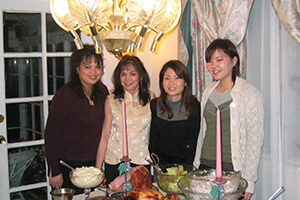 ホストファミリーとサンクスギビングのディナーを囲んで