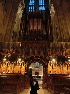 私はキリスト教徒ではありませんが、毎週日曜日に教会に行き、礼拝に参加しました。礼拝はバンドの演奏に合わせて歌を歌うことなどがあり驚きました。 説教やお祈りの意味が理解できない時もありましたが、日本語と英語の聖書を両方読むことで、理解を進めました。礼拝後に様子を見にきてくれる方もいて、分からないところはその場で質問することもできました。クリスマスには教会の聖歌隊に参加し、多くの方々とお祝いをした経験も忘れられません。