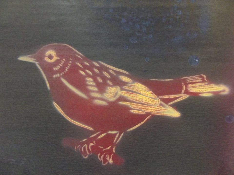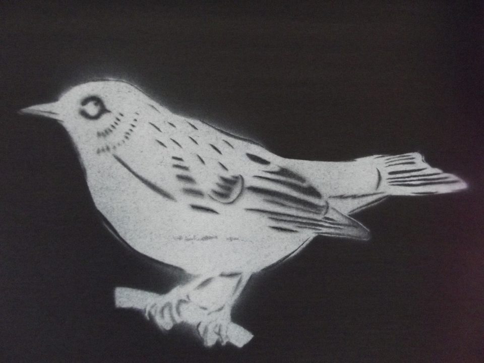 ステンシルの作品:雀[/caption]