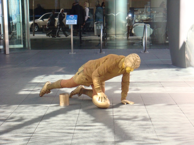 街中には身体をペイントして金色のラガーマンの銅像になっている人も!!