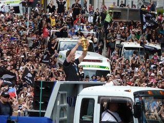 留学中の多くのSEKAIA生が、期間中試合の観戦をしました。24日にオークランドで行われた優勝パレードを、ホストファミリーや友達と見に行った学生も沢山いたようです。人、人、人で25万人が集まったそうです。小さい子供が「One day I wanna be Abs!!」と叫んでいたり。。。キウィにとっては、最高の一日になったようです!Congratulations!!