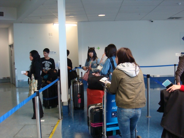 アドバイザーの引率で乗継をする学生さん[/caption]