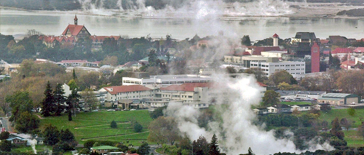 天然温泉や先住民文化で有名な観光地ロトルア(北島)