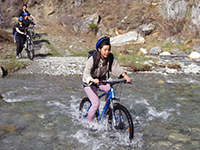 マウンテンバイクで川も渡りました