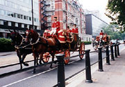 大学寮の近所を通る警備隊の馬車。ロンドンでは日常的な風景 |