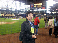 | マリナーズの本拠地セーフィコフィールドで取材中 |