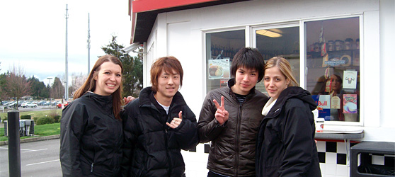 A:伸びたと思います。実際アメリカにきて生の英語で授業を聞き、理解しなければならない事にはだいぶ苦労しました。しかし習うより慣れろ、といった具合にシアトル研修中に英語を初歩から叩き直され、そして今の大学での授業にはついていけてる様になりました。早い時期にアメリカに行った事で大学に入学するまでの間に英語をしっかり伸ばす事が出来たと思います。