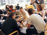 A:英語学校ではTOFEL、IELTSを中心に、Reading、Writing、Listening、Speakingを習いました。Readingは文章を読んで問題に答えるのと、早く的確に内容を理解できるようにスピードを計って問題を解くSpeed Readingなどがあります。WritingはEssayとSummaryをやります。Essayは出題されたトピックをもとに300〜500字程度書きます。SummaryはEssayの文章を3分の1に要約します。Listeningは、テープを聞いて内容をNote Takingし、問題を解いていきます。いろいろなアクセントに慣れるように、複数の国の英語のアクセントを聞かされます。Speakingは会話中心。グループに分かれ、出題されたトピックをみんなで話し合いました。