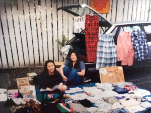 私(右)フリマで売り子しています・・・