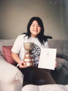 Art Cupは一つのトロフィーを歴代受け継いでいく賞です。毎年受賞者の名前がプレートに追加で刻み込まれていきます。この賞の授与はサプライズで行われ、受賞者は2週間ほどトロフィーを自宅に持ち帰ることができ、その後学校に返却をします。その後名前が刻み込まれるので、私は刻んであるだろう自分の名前を見たことがありませんでした。そこで、今回の訪問を期に、ちゃんと名前があるか確認してきました!