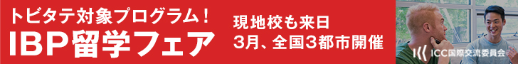 - 03月18日(日)12:00~17:00 IBP留学フェア(入退場自由)【大阪会場特典あります】