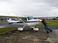 ワンガレイ空港にて自家用機を給油所へプッシュバック
