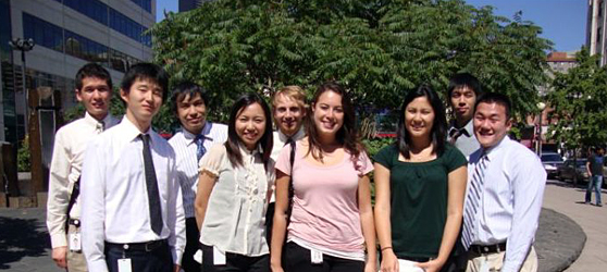 A:日本帰国後(9月半ば)、すぐに就職活動を始めましたが、やりたいことが見つからず、途中で一度中断しました。アメリカでの就職も視野に入れていたので、自分の決心を確かめると情報収集のためにアメリカにもう一度行きました。いろいろ調べた結果、やはり新卒でアメリカに就職しようとしてもビザがなかなか下りないので、まず日本で経験を積もうと思い、1月から就職活動を本格的に開始し、大手証券会社から内定を頂きました。